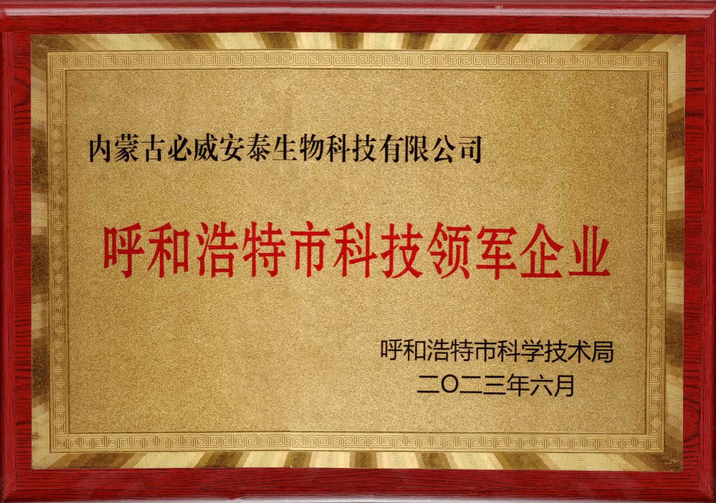 喜訊:熱烈祝賀我司榮獲“呼和浩特市科技領(lǐng)軍企業(yè)”榮譽(yù)稱號